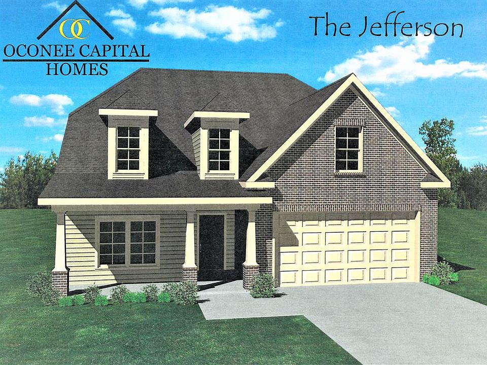 The Jefferson is 2684 Square feet, 5 bedroom, 3 bathroom home built by Oconee Capital Home Builders. Beautiful kitchen which includes granite counters, island, and stainless steel appliances. Owners suite on the main level with a huge walk in closet. One additional bedroom and bathroom on the main level.