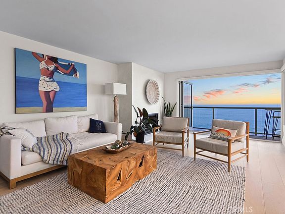 UNBELIEVABLE VIEW IN THIS OCEAN FRONT 3-BEDROOM PENTHOUSE, WITH STAIRS DOWN TO THE BEACH. Open the two sets of bi-fold doors and watch dolphins and pelicans at your leisure. Completely renovated in 2021 that includes a gourmet kitchen and outdoor barbecue which can be converted to a pizza oven. Enjoy the whitewater, sunset, and Catalina views, all while immersing yourself in the sounds of the crashing Pacific Ocean waves. Featuring pristine finishes throughout with multiple custom built-ins, outstanding woodwork, and motorized Hunter Douglas window treatments, this unit is truly stunning. An open style kitchen offers quartzite countertops, stone backsplash, high-end appliances, and custom cabinetry. Three bedrooms with custom built-ins offer ample storage space. The primary suite features beautiful detailing and dual bathroom sinks with stone counters. Direct beach access from property, gated parking with two designated parking spots, elevator from lower-level parking to third-floor unit. EV charge port specific for this unit. Owner is a real estate agent.