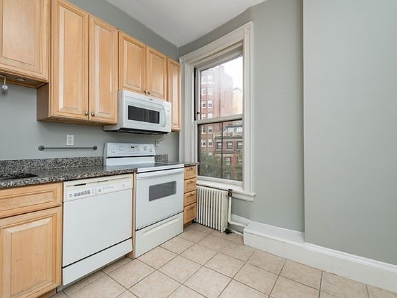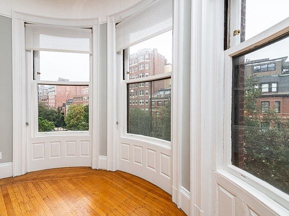 Sunny, front-facing, one-bedroom condo with bay windows, architectural details, 10' ceilings, fireplace and hardwood floors. Bedroom has built-in custom closets and a brand new ensuite bathroom. Well-managed elevator building with common laundry and an expansive roof deck with breathtaking views of the Charles River and the city skyline. Located in the heart of Back Bay close to Newbury Street, T stations, the Prudential, Esplanade, shopping/restaurants, etc. Video tour available. Rent Fee Includes: Heat, Hot Water. No smoking, 1 cat allowed. 1st, last, security + broker fee due upon lease signing.