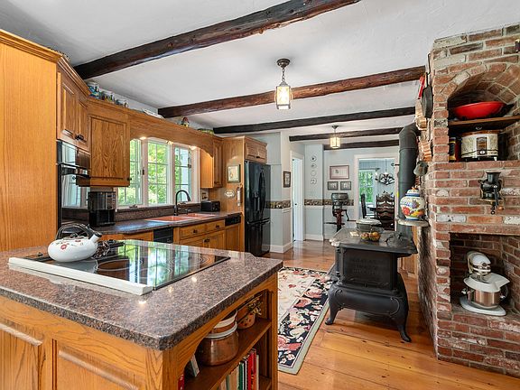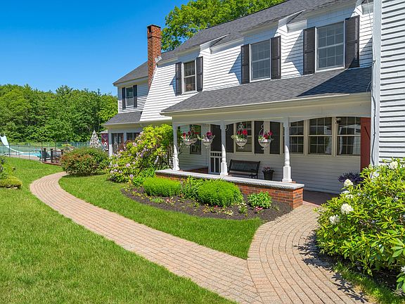 This expanded traditional Colonial home sits on a 16-acre signature property that includes woodland, fields, trails, and a spectacular back yard with in-ground pool, tennis court, fire pit, and large TimberTech deck. A separate cottage is perfect for a work-from-home business or in-law apartment. The house has been carefully updated while retaining its country charm and period craftsmanship. It boasts pumpkin pine and parquet wood floors, high ceilings, exposed beams, fireplaces and wood stoves. The downstairs open floor plan ties country kitchen, large family room and spacious sunroom together for informal living complemented by a formal living room, dining room and den. Upstairs has the master suite with walk-in closets and a fireplace, plus four large bedrooms with plenty of closet space. Recent upgrades include a new roof, all new windows, repaved driveway, insulated and waterproofed basement, and full-house generator. Other amenities include beautiful landscaping, established perennial gardens, a six-car garage, ionization system for low-cost pool maintenance, and indoor hot tub. Enjoy life the way it should be in a safe, welcoming community with an excellent school system and winning sports teams only 15 minutes from Portland and the airport.