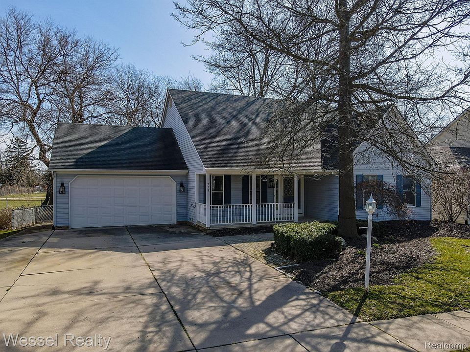 Excellent opportunity awaits with this move-in ready 1 ½ Story Cape Cod Style home nestled in the highly sought after “Village West” subdivision within walking distant to the Village of Romeo. A well-thought-out layout offers a primary bedroom with ensuite and first-floor laundry. Spacious living room with fireplace and built in home bar and beautiful kitchen with wood cabinets and granite countertops. New vinyl flooring throughout living, dining, laundry room and kitchen (March 2024). Upstairs boasts two spacious bedrooms with generous sized walk-in closets and the convenience of a Jack and Jill bathroom. Carpet replaced in both bedrooms (January 2019). Through the slider is an open-air composite deck and fully fenced backyard along with a shed for extra storage. A village-owned parcel backs the property, giving extra privacy with no neighboring homes.