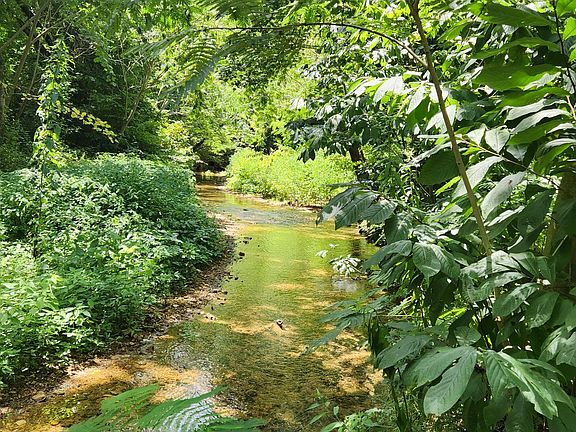 Inviting Creek behind this walk in ready home (it could use a little repair/updating). Privacy setting with a good size yard. Newer HVAC & roof. Large shed for storage. Attached enclosed garage or shop. Original hardwood floor throughout the home (some of the floor joists have settled over time). Home may require flood insurance.
