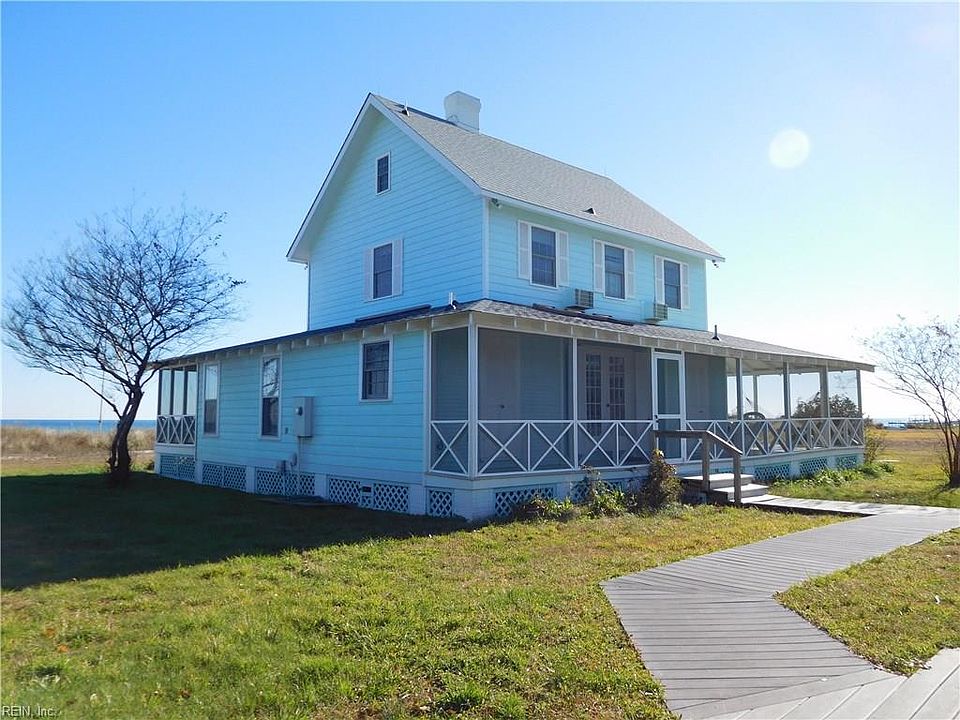 Gwynn's Island Bayfront vintage home and guest cottage. Long bay frontage with wide sand beach and shore protection in place. Good elevation. Main home feels like a step back in time. Improved over the years and just painted with attention to detail in keeping with the feel of the original 1940's structure with modern systems in place, baths, classic "river" colors, bright open feel, with wrap around porches, attic bunk room and sitting area and bath. Separate almost new cottage with one bedroom and bath and detached two car garage. This Island home and cottage has two lots and possible expansion into a larger family compound, you must see to appreciate the attention to detail to keep the "flavor" of the original bay escape. Addition 4+ acre adjoining woods land available for $65,000. This classic beach home and cottage is being offered for the first time in almost 70 years in the same family. Call for showing.
