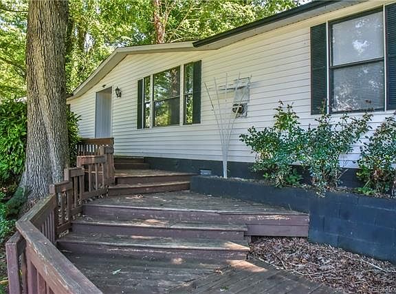 Spacious double-wide home in a nice, friendly neighborhood in Fletcher just off Hoopers Creek Rd. Mature trees in large front & back yards with a covered carport and additional driveway parking. Enjoy your huge front and back porch decks, and 2 storage sheds perfect for your yard tools, workshop or studio. Inside you'll find a huge living room with large front bay window, built-in cabinets/shelving & gas log fireplace (need tank & hooked up) Kitchen has a closet pantry, breakfast bar, lots of counter space, & double sink. A split floor plan, the master suite features 3 closets, ceiling fan, double vanity sinks, a soaking tub plus a step in shower. On the other side of the living room are 2 good-sized bedrooms and the guest bath with step-in shower. On solid block foundation with ground cover underneath.