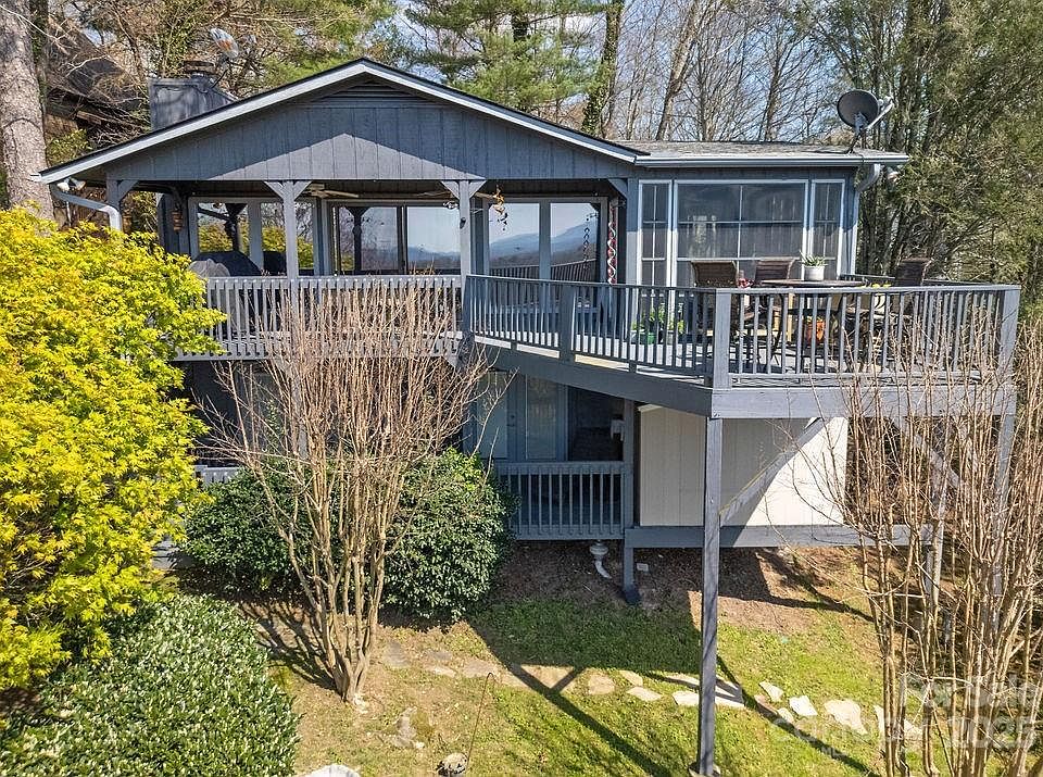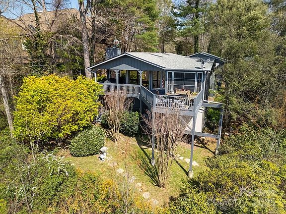 SPECTACULAR VIEWS! This beautifully remodeled mountain retreat offers sweeping 180° vistas of the Blue Ridge Mountains from expansive decks—perfect for enjoying sunsets and changing seasons. Extensively updated in recent years, the home features a new primary ensuite bath, laundry room, half bath, HVAC, and luxury vinyl/tile flooring. Additional highlights include a gas fireplace, updated appliances with a gas stove, a 2023 electrical panel upgrade, and fresh exterior paint (2021). The living room sliders frame breathtaking views and fill the home with natural light. Nestled against Connestee Falls greenspace for added privacy and an authentic mountain living experience, and located on one of the nicest cul-de-sac streets in the community. The views are unmatched—this one is worth seeing in person. A perfect second home or full-time residence for those seeking mountain luxury. Buyer to pay a one-time amenity fee of $13,500 at closing or $15,500 if paid within the first calendar year.