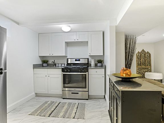 This 1000 sq ft spacious and bright studio apartment is fully renovated and located in the basement of a private home on a quiet, tree-lined street in East Flatbush, with its own private entrance. The unit features a very large, open space, with tiled flooring, a kitchen area complete with new, full-sized stainless steel appliances including brand new microwave, polished white cabinets and stone countertops as well as a separate bathroom with large shower. It has several alcove spaces that allow for the separation of bedroom, living room and eating area, making it feel larger than it already is. Short walk to the B46 Express Bus, 10 mins to the 3/4 trains at Utica & Eastern Parkway, 15 mins to the A/C trains at Utica & Fulton and 20 minutes to downtown Manhattan. Supermarket and laundry less than a 5 minute walk away. Plenty of street parking. The apartment has its own separate alarm system and is set up for Verizon FIOS Internet and Optimum cable. ALL UTILITIES (heat, cooking gas, electricity and water) and Wi-Fi are included! This is not your typical basement apartment and is a must see! Showing by appointment only. Available for move in. (Apartment will be delivered unfurnished).