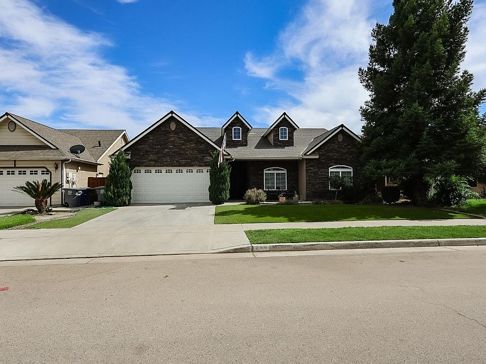 Welcome to this beautifully designed Lennar built 3-bedroom, 2-bathroom home featuring a spacious layout and energy-efficient upgrades! Enjoy both a living room and family room, connected by a stunning double-sided fireplace and soaring vaulted ceilings that create a light and airy feel. The kitchen in this home has been recently updated with new counters, sink, breakfast bar, appliances, and more! There is a living and family room, as well as two dining rooms. The oversized primary suite is ideal for a nursery or home office, and includes dual walk-in closets, a spa-like bath with separate shower and tub, dual vanities, and private access to the covered patio, perfect for late-night dips in the pool. Flooring includes rich real hardwood, laminate, and carpet. An owned solar system and battery pack ensure low utility bills and year-round comfort. The guest bedrooms are ample in size, with ceiling fans, and big windows. If you are looking for a new place to call home inside of Reedley's premier neighborhood, you have found it! The backyard is complete with a pool, including a play step, and water feature, and both the front and backyards have artificial turf, for minimal maintenance. If you want a pool, large floor plan, vaulted ceilings, and an owned solar system, this is it! Don't miss this entertainer's dream with style, space, and sustainability!