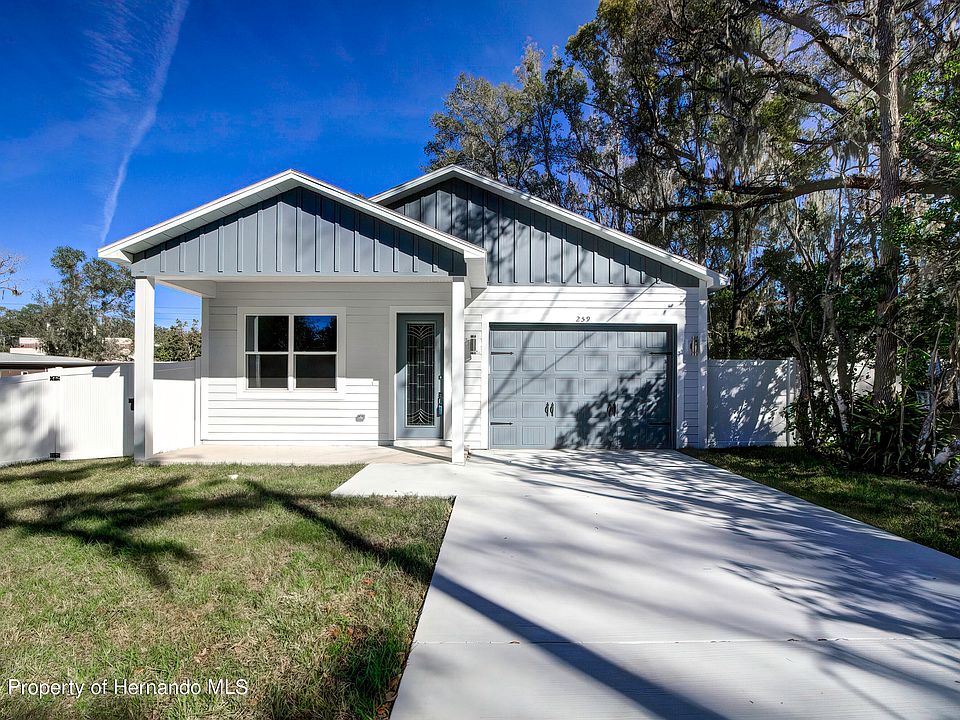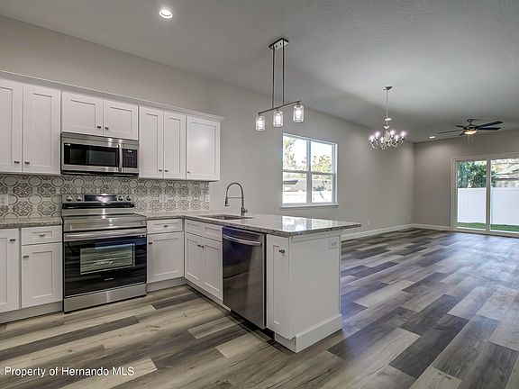Location, location, location! Charming new 2024 cottage built right in the heart of downtown Brooksville, on the historic brick road of Liberty St. This brand new cottage has great accessibility, it's only steps away from everything downtown has to offer and also just a short drive to I75. This classy cottage is filled with high end luxuries to make you feel right at home! The thoughtful kitchen design includes beautiful granite countertops, solid wood cabinets with self closing doors and drawers and matching Samsung stainless steel appliances. The large open concept living area is perfect for family get togethers and parties. This adorable home features waterproof vinyl plank flooring throughout every room and sliding glass doors that open to a huge covered back patio! Enjoy plenty of privacy with a 6' vinyl fenced backyard. Vinyl plank waterproof flooring throughout. Boracare 10yr termite treatment. Full 1 yr builders warranty and 10 yr structural warranty. Don't miss this unique opportunity to own this brand new 2024 luxury cottage in the heart of downtown Brooksville!