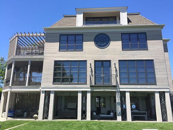 The best of luxurious & casual living! Completely custom designed, award winning chic & modern home on rare 1/3 acre in the heart of the coveted Fairfield Beach area. Spectacular beach sunrises & water views from every level. Stunning curb appeal is reminiscent of Provence w/French doors, window boxes & grass paver courtyard. 4-6 bedrooms, 4 w/en suite baths, plus Powder Rm. Intriguing textures, colors & architecturally aligned sight lines throughout. Every detail was designer selected w/the highest quality & comfort in mind. Appointed finishes perfectly paired as durable & elegant. Ascend to the main level foyer via 4 story elevator or mahogany staircase. Open & flexibly designed living space w/9 ft ceilings, radiant heat, built-ins, millwork & high-end finishes throughout. Main living area is perfect for entertaining & everyday living w/fireplace, bar & balcony overlooking Gunite pool w/auto cover. Modern floor to ceiling windows. 2 inch quartz kitchen/bar counters. Screened dining/lounge area off kitchen. MBR Suite w/water views includes sitting room/office, his/her closets & vanities, radiant heat, oversized glass shower, gym/yoga studio & deck w/ hot tub. 3rd floor includes rec room w/balcony & superb water views. Abundant closets & storage, mudroom & 5 decks/balconies with custom iron, glass & cable railings. Expansive, fully finished & covered outdoor entertainment area. FEMA compliant. Walk to town/beach. Some homes must be seen - this home must be experienced! Please view video link !