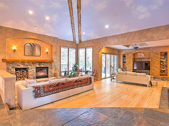 Experience Colorado mountain living, just 45 minutes from Downtown Denver. This exquisite home is tucked away in the highly desirable gated community of Upper Bear Creek Ranch (just off Upper Bear Creek Road). Seated on just under 8 acres, this home boasts 30 foot ceilings, wide plank white pine floors, and four fireplaces (three wood burning and 1 gas). The home's oversized windows frame the picturesque Evergreen landscape that surrounds.