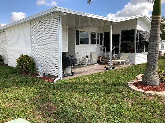 This 2 bedroom, 2 bathroom home comes turnkey (except personal items) so you can literally move right in and start enjoying Florida living. The kitchen is white and bright with a beautiful bay window that looks out over your lake view. The kitchen sink and disposal were replaced a few short years ago and the refrigerator is only a year old. There is ceramic tile in the entrance way, kitchen, lanai and both bathrooms. The dining room has built-in's that provide a decorative touch and tons of additional storage. The living room has stunning windows that really let in the light. The spacious master bedroom has an ensuite bathroom with double sinks and a garden tub. You can sit back and enjoy your gorgeous lake view from the covered patio on the rear of the home. The washer and dryer are only 2 years old and the air conditioner was replaced in 2016. There is even a golf cart available that is not yet included in the price but is negotiable. Don't miss out on this beautiful home in The Gardens!