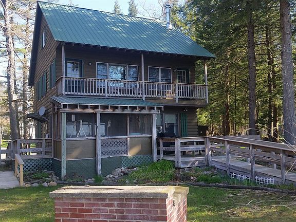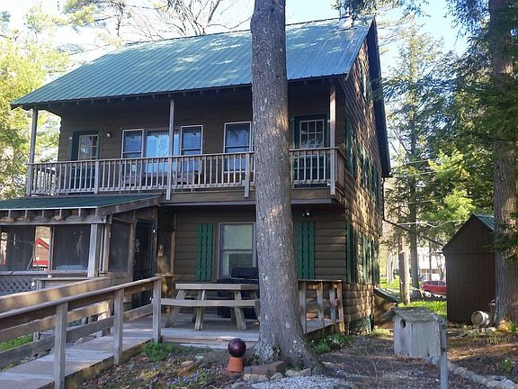 Delightful novelty log two story waterfront home with decks, docks and beautiful sunrises. It offers a fireplace, screened porch, large billiard (game or family) room, 7+ rooms all neat clean and in top top shape. Direct lakefront of 50ft.