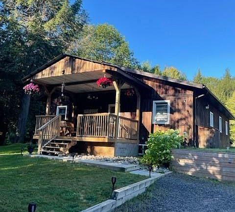 Welcome to your private oasis in a serene, unorganized township! This remarkable 3-bedroom, 2-bathroom bungalow offers an unparalleled retreat on almost 9 acres of scenic land. Situated in a quiet area and only a short distance from the highway, it provides the perfect balance between tranquility and convenience. As you explore the property, youll discover three spring-fed ponds (2 that are equipped with fountains), a screened gazebo, and breathtaking perennial gardens. Meander through the trail system, hike, snowshoe, or ATV and connect with nature in your own backyard. Inside, the open concept main living area boasts cathedral ceilings, creating an airy and spacious atmosphere. The inviting wood stove adds warmth and charm, making it the perfect spot to relax on chilly evenings. The master bedroom includes an ensuite bathroom for added privacy and convenience. Throughout the home, youll notice the tasteful wood accents that give it a cozy and rustic feel. The custom wood kitchen offers ample storage and ample counter space to prepare culinary masterpieces. Extend your entertaining space to the large outdoor deck, where you can host gatherings and create lasting memories with friends and family. Keep those cool fall evenings of entertaining warm with one of the three fire pits, enjoy the crackle of the wood in the cool night air. Additionally, the 50x24-foot heated detached garage offers the perfect man cave experience, with space for both work and relaxation. Multiple sheds for storage and shelters for ATVs and toys, as well as to keep your wood dry and ready to use. Never worry about power outages with the generator hook-up, ensuring peace of mind during any weather conditions. Dont miss this opportunity to live in your own private retreat, surrounded by natures beauty.