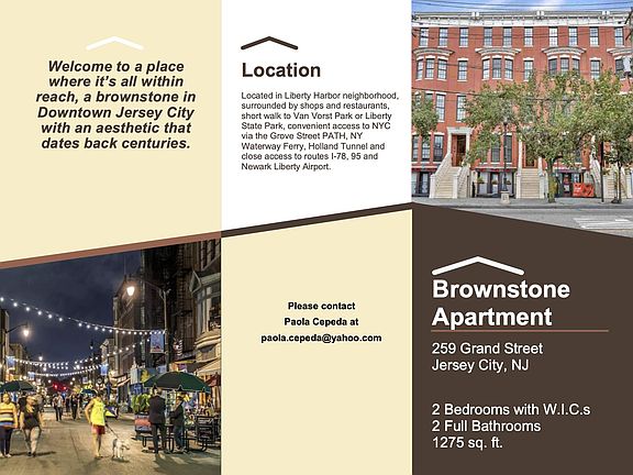 This 1275 square foot apartment home has 2 bedrooms and 0.0 bathrooms. This home is located at 259 Grand St, Jersey City, NJ 07302.