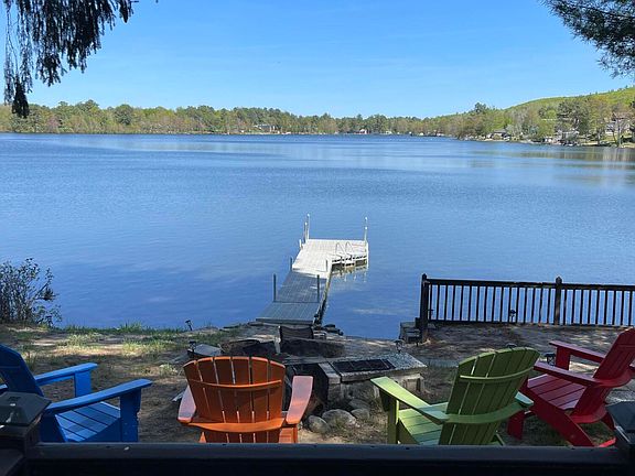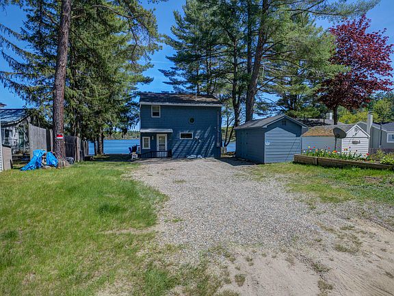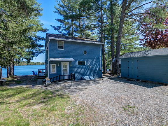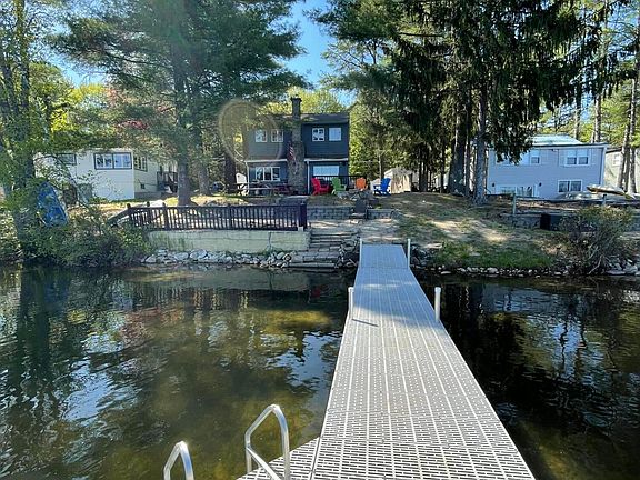 Welcome to Granny Kent Pond! This 3 bedroom, 1 1/2 bathroom colonial style home has 50' of OWNED frontage providing you with endless hours of peace and gorgeous views. Outside has several areas for sitting/sunning, a maintenance free dock, shallow entry into the water, a spot to launch your watercraft or boat, firepit, a large shed for storage or whatever your imagination decides, a 50'x100' lot across the street with another large shed and a large raised garden bed. Step inside to an open kitchen/living/dining space with updated kitchen, wood floors, views of the water and beautiful fireplace. The 1/2 bath is being redone over the next 2 weeks and offers a washer dryer hookup also. Upstairs has 3 bedrooms and a bathroom with shower plus a large storage closet and nook at the top of the stairs. The full basement has space for storage and a workbench area. This year round home is move in ready and just waiting for you to make this the best summer yet!