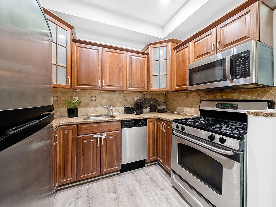 Nestled in the vibrant Jersey City Heights, this inviting 2-bedroom, 1-bathroom condominium offers 688 square feet of comfortable living space. The well-appointed kitchen features stainless steel appliances, granite countertops, and generous cabinet storage. Privacy is assured with bedrooms thoughtfully placed at opposite ends of the unit.