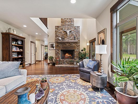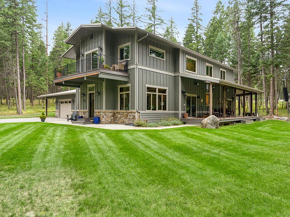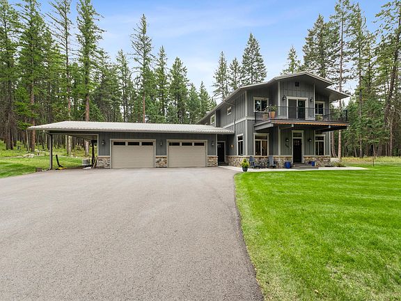 Experience Montana living at its finest on just over five private acres, where mountain-modern design pairs serene seclusion with quick access to downtown Whitefish. This thoughtfully crafted retreat features four spacious bedrooms and four baths, offering both comfort and privacy. The open main floor showcases a new fireplace in the inviting living area, along with a bright kitchen and dining space designed for gatherings. Upgrades include a laundry with dog wash, whole-house generator, newly added bathroom, Sonos sound system, covered outdoor deck, outdoor deck heaters, timed-outdoor lights and a hot tub. A covered wraparound deck frames the scenic setting, while the oversized double garage provides abundant room for vehicles and gear. With gently rolling, usable acreage and a peaceful natural backdrop, this property blends style, function, and convenience. Appraised 08/2024 at $1,762,000.