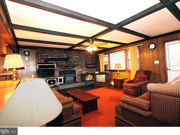 Back on the market! This block-built with retro style decor home is waiting for you to move right in and make it your own. Situated on over 4 acres, this three bedroom, two full bath home has a super dry basement with inside and outside access, and the entire structure is built from masonry coated with concrete. The house features a large eat-in kitchen with island, double sink, gas range, custom cabinetry (and pantry. Just off the kitchen is the living room which has a Fisher airtight wood-stove insert along with a well maintained wood oven/stove. Moving into the bedroom area of the home, you will find an extra wide hallway area which can be used as a computer/gaming/office area. The home is heated by a gas boiler for baseboard heat, and the previous owner installed ductwork for either a forced hot air heating system or central air to compliment the efficient baseboard heating system. Those ducts are sealed off now, but you could easily install a new HVAC system! The master bedroom has a double closet and full master bath. If you like dark paneling throughout the home, this is the place for you! If not, get some paint out and brighten it up. The house needs mostly cosmetic work with repair or replacement of the appliances and potable water pressure tank. The bonus here is that there is a detached brick garage with wash room, oil heat and electric service! There is a front door and back door including one overhead garage door. If you collect cars or need a workshop, this is the place for you because the garage is large enough to store about four cars! Even though the garage structure appears sound, the garage needs the entire roof replaced which is caving in. There is a septic system for the house and possibly a cesspool which serves the garage. This is an estate sale which is PRICED TO SELL and being offered STRICTLY "AS IS" and the buyer is responsible for all inspections and certifications including water, termite, Certificate of Occupancy, etc. Preferred method of purchase is cash. This property is NOT eligible for USDA or VA.
