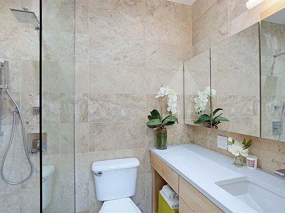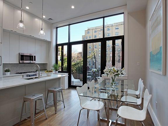 259 Hoyt St Townhouse perfectly positioned at the nexus of Boerum Hill, Carroll Gardens and Gowanus. Built in 2014, this stylish, modern brick 2 Family townhouse is all brand new! Graced with excellent light, soaring ceilings, over-sized doors and windows, floating staircase, spa baths, discerning finishes, acoustical sound insulation and the best quality floors and construction. This modern beauty is built to the highest standards. Built 20x36 this one-of-a kind 5BR/4.5 Bath home offers an owner's triplex and a 2BR garden rental with a flexible layout. 2900SF includes finished basement. Four finished outdoor spaces offer 1305 SF of landscaped garden, 20 wide cedar and steel parlor floor deck, finished roof deck with panoramic views, and front bluestone patio. The entire house has 4 CAC units, high efficiency LED lighting, 3 vented laundry areas, video intercom and wired security, efficient gas-fired heat in 4 zones plus radiant floor heating, luxury flooring, 7 solid-core doors. All the windows are custom thermal casement windows, including two picture windows with garden vistas from the parlor and Master Suite. The open, loft-like parlor has nearly 12 ceilings and houses living room, powder room, kitchen, and dining areas that lead out to a gracious deck. A stunning floating staircase with 4 solid oak treads, custom steel and cable railings leads to a double height landing with panoramic windows and skylight. The bright top floor has 3 BRs, two full baths and laundry. The spacious Master BR has a full wall of closets. The fully finished basement has two natural light wells, laundry room, full bath and shower, and brand new mechanicals. The Owners Kitchen has custom double-height Brookhaven cabinets, Ceaserstone countertops, Grohe faucets, custom-panel Liebherr built-in refrigerator, stainless Bosch dishwasher, microwave, built-in cook top and wall-mounted oven, and a custom peninsula with breakfast bar. The 3.5 Owners baths have custom designed vanities, Grohe faucets and hardware, Ceaserstone counters and Kohler commodes. The powder room has a custom marble floor and counter, the en-suite Master is lined with Travertine stone and has a sophisticated walk-in shower with fixed glass panel. The junior bath upstairs is lined with Carrera marble and has a Kohler deep-soaking tub. The two-bedroom garden rental has separate heat, hot water and electric, a Whirlpool washer/dryer, patio access and a private entrance.