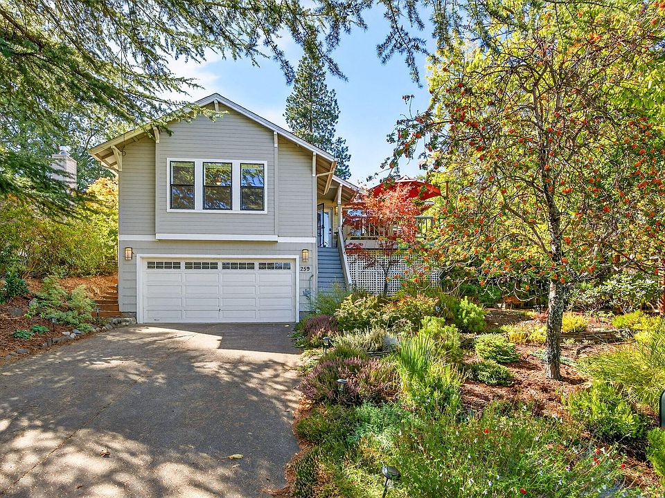 Nestled in a peaceful neighborhood just minutes from downtown Ashland, this 3-bed, 2-bath home radiates warmth & charm. The living room flows to the dining area & office/sunroom, where natural light enhances the sense of space & creates a seamless connection to the vibrant backyard. Delight in cozy moments by the fireplace, while the updated kitchen, featuring quartz countertops & stainless steel appliances, invites effortless entertaining. The primary suite offers a mini-split for year-round comfort & a spa-like tiled bath with skylights, dual vanity & a step-in shower; the second bath also features a stylish step-in shower. Recent upgrades include a 2024 HVAC system, fresh paint inside & out, engineered hardwood floors, new lighting & a 2017 roof. Fabulous views for dining al fresco on the front deck or sip cocktails in the private, flower-filled backyard-uniting comfort, beauty & place.