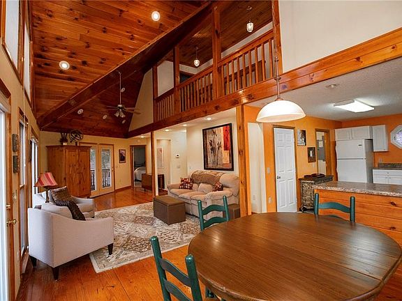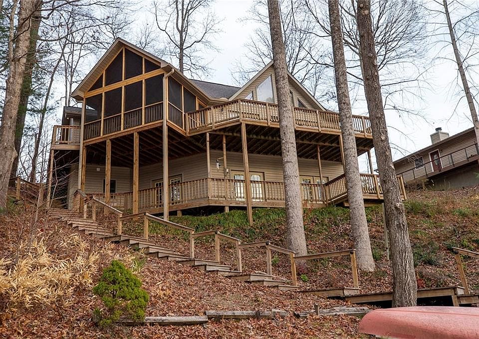 Spectacular mountain views on one of South Carolina's best kept secret lakes, this 3 bedroom 3.5 bath Lake Cherokee home will absolutely take your breath away. With a full sized covered boat dock, and a huge deck overlooking the lake, this property is perfect for anyone looking for a weekend getaway or forever home. The main level boasts an open floor plan with vaulted ceilings, hardwood floors, dining area, spacious kitchen, and screened in porch. Huge picture windows and french doors lead out from the living space onto the massive deck, ideal for entertaining. The master bedroom is located on the main level, features a view of the lake and its own full bath. The main level also contains a large dedicated laundry room and a half bath for guests. Heading to the upper level, you'll find two well appointed bedrooms with a jack and jill bath between them, and an open hallway looking down into the family room below. Heading to the lower level, you'll find another full bath, storage room, and a massive bunk room/den that could easily be a 4th bedroom. If you've ever wanted to be on a lake that is large enough for activities like skiing, but not overcrowded every holiday, this Lake Cheorkee home is meant for you! Ideal for anyone looking for a short-term rental investment property, multiple family home, or forever home! This is a must see!