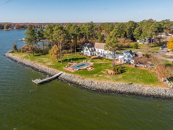 This spacious and One of a kind Waterfront home has stunning 180 degree views of the Rappahannock River and commands 840 feet of waterfrontage. This Estate home is ideal for family life and gracious entertaining. Flowing outdoor entertaining spaces featuring a chef's outdoor kitchen, sprawling patio & screen porch are perfect to host large family gatherings and elegant parties. There is plenty of room to lounge around the exquisite 20x40 ft. pool and the well-manicured lawn & landscaping enhance the home's welcoming atmosphere. There are few properties that offer the elegance, setting and space of this most special offering. There are 5 ensuite bedrooms, gorgeous heart pine floors throughout the lower level, a chef's kitchen, warm and welcoming open gathering spaces, porches and balconies galore, a three story open dining room, glass windows and doors abound offering views from every nook and cranny. This is a one of a kind offering. Conveniently located just minutes from the charming town of Urbanna, home to the renowned Annual Oyster Festival. Interior photos coming soon.