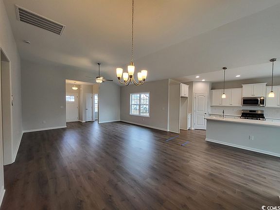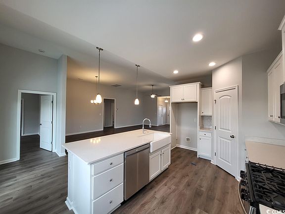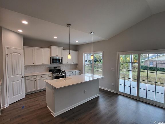 Golf cart to the beach from this beautiful custom floor plan, built by the local builder voted Best of the Grand Strand and Best of the Beach for the third consecutive year! In the Ocean Palms community (Voted Best Neighborhood!), and almost complete and ready for you to move into - completion is scheduled for late November. This terrific 3 bedroom, 2 full bath, open floor plan home has upgraded waterproof LVP flooring throughout - no carpet. Stainless appliances, staggered-height white Shaker-style cabinetry, quartz counters, a corner pantry and a convenient breakfast bar combine to give the kitchen the wow factor you're looking for, and the abundant recessed lighting, pendants over the breakfast bar, double windows in the kitchen and slider flood the space with light. The slider leads to a covered porch with a large separate patio. The spacious master retreat features a tray ceiling, quartz counters, double sinks, an oversized walk-in shower, plenty of storage in the cabinetry and linen closet, plus a huge walk-in closet. Two additional bedrooms and a bath are tucked off on their own private hallway. All of the homes in Ocean Palms come standard with the luxury of natural gas (tankless water heater, gas heat and a gas range). The garage is completely trimmed and painted, with floored attic space accessed by drop-down stairs. Ocean Palms is conveniently located near shopping, restaurants, schools and world class medical offices and hospitals, and a short golf cart ride to Surfside Beach's gorgeous beach and the Atlantic Ocean. Other floor plans and inventory homes may be available. Community pool and cabana!