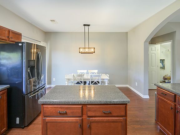 Large islandFully fenced backyardPlenty of cabinetrySpacious bedroomsAbundant countertop spaceGleaming hardwood floorsLush tree line