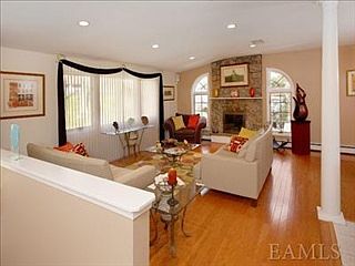 Contemporary home in immaculate condition. Lovingly cared for by present owners. Floor to ceiling cut stone fireplace in Living Room. Vaulted ceiling on 1st floor. Hardwood floors, updated baths. White Piccini Cabinetry in Kitchen. New Master Bath, Lower level Den with stone fireplace with sliding glass doors to deck. Walk to town, train and shops. Taxes do not reflect star.