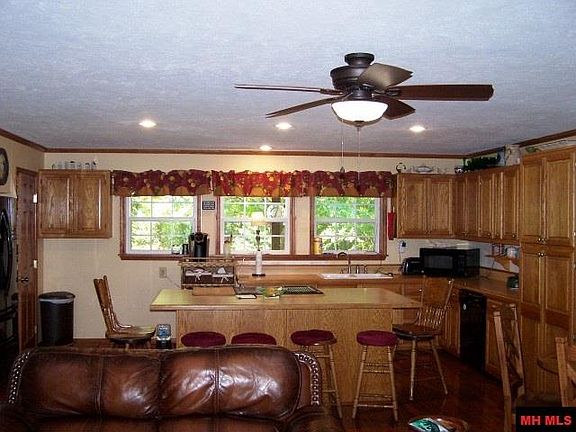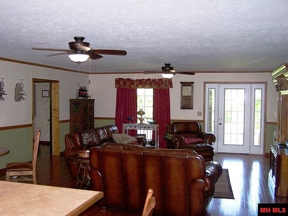 Beautiful setting, 8' covered deck wraps around whole house, great room & split bedroom plan. Hardwood & tile floors, walk-in pantry. Tile shower & whirlpool tub in master bath. Country living, hill top location and just minutes to river, lake and town. All on 2 level acres m/l.