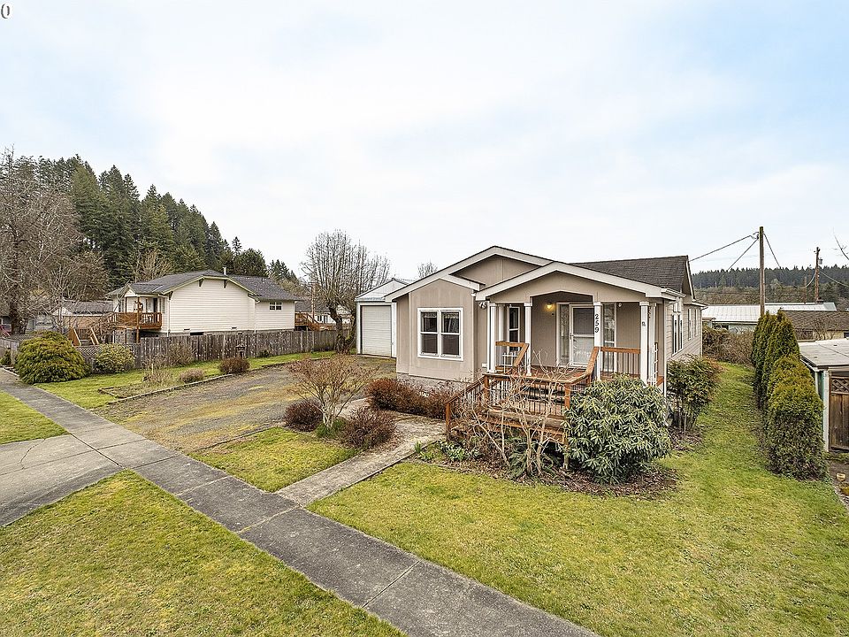 VERY well kept manufactured home(lifted above flood plain)with large shop with loft, work shop area and 110 power enough room to keep cars as well as RV's! Great neighborhood, big driveway that will hold 6 auto's comfortably, apple tree and grapes, blinds in all windows. 3rd bedroom has no closet.