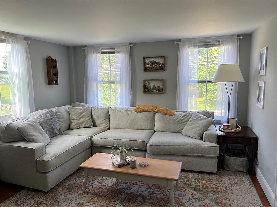 Lovely sunny second floor unit located just blocks from the Guilford Green and the Guilford Harbor. Walk to town for restaurants, coffee with friends or shopping and go in the other direction to watch the boats come and go from the harbor. This location is ideal for commuting too. Just down the street is the Guilford train station providing convenient access to New Haven, Old Saybrook and points beyond. Recently painted throughout, this unit is clean and ready for you. Antique wide board floors bring charm to the space. The kitchen and bath have new wood-like laminate flooring to update the space and the kitchen has a rollable dishwasher topped with a butcher block like top for added counter space. This unit comes with a stackable washer and dryer for your convenience. Just across the street is the historic Whitfield House. The unit includes off street parking and city water. The square footage listed is an estimate as the town only lists the total square footage of the entire building. There is additional space in the attic available for storage. The list price reflects a $25 discount for agreeing to pay by electronic transfer. Pets are considered on and individual basis. Tenants are responsible for all utilities. Separate utilities for each unit in the building. This is an annual, unfurnished lease.