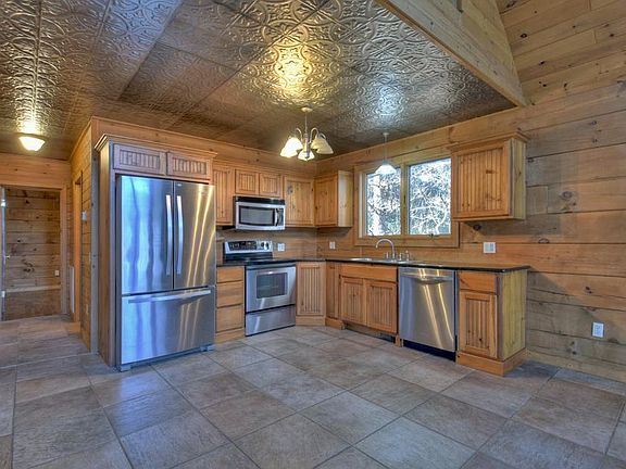Quaint & Cozy unique cabin with end of road privacythis charmer boasts 3 bedrooms/3 baths, open living /kitchen/dining concept with warm fireplace & soaring ceilings, master ensuite boasts private balcony & spa like bath with jetted tub & separate shower, spacious kitchen features warm pine cabinetry & plentiful storage, stainless appliances & pie tin ceilings, finished terrace level with guest quarters & rec room/den that opens to walk out patio, metal ceilings, plentiful windows to take in the view, layers of porches & decks overlook storybook setting with mature landscaping, warm wood interior exudes comfort, abundant wildlife, mixture of textures and finishesquiet community with mountain views just minutes from historic downtown Blue Ridge, Lake & Toccoa Riverlog construction & massive beamsso much potential with a bit of freshening upa must see!
