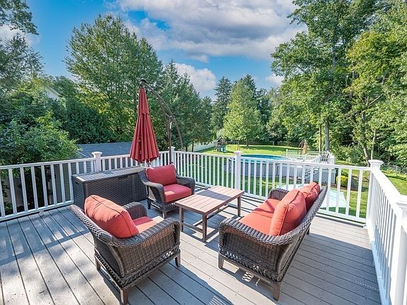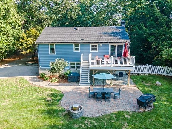 Beautiful home with large private back yard! Open floor plan features updated white kitchen with Corian counters, breakfast bar, pantry, updated appliances, tiled backsplash and eating area with slider to deck and open to vaulted living room with wood fireplace. 3 good size bedrooms and updated full bath w/ granite counters complete the main level. Lower-level features large great room with play area, office space, updated full bath with tile shower, laundry room, mudroom entry and workshop. Other features include: 16x14 Composite deck, patio w/firepit, Marvin vinyl windows, Lifetime guaranteed Duraslate roof, recently painted exterior, composite exterior trim, copper gutters and downspouts, Reeds Ferry Shed, 24' above ground pool with saltwater generator/conversion, Invisible fence, hardwood floors throughout 1st floor and more! Set on private wooded lot with access to town fields. Conveniently located near major highways, schools, shopping and commuter rail!