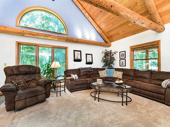 Think of it as your home away from home! It's like coming home to a vacation every day! Situated on a heavily wooded and private 4.3 acre retreat at the end of a cul-de-sac, this beautiful log cabin has been wonderfully maintained and updated! Spacious 3 car garage! Relax and enjoy the changing of the seasons on the large rear deck, pool, hot tub, covered front porch or walking trails! Full finished lower level! Grand cathedral ceilings throughout the great room and kitchen!
