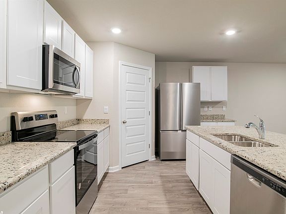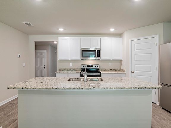 Welcome home to Raley Farms! This beautiful 4 bedroom / 2 bathroom Cali A design has never been occupied and is ready for new owners. Upon entering the home, the foyer leads straight into the kitchen / dining area and opens up to the spacious living area. The kitchen is well equipped with brand new stainless steel appliances, white cabinetry and granite countertops. The new stainless steel refrigerator also conveys. Off of the living area is the master suite featuring a large walk-in closet and ensuite with double vanity, granite countertops, soaking tub and separate shower. The second and third bedrooms are at the front of the home with a full bathroom in between. The fourth bedroom is across the hall from bedrooms two and three. The home also features brand new LVP flooring and 2 inch blinds installed throughout. The large backyard is private due to it's location at the end of the street and within walking distance to the pool. The home is on a premium lot with open space to the North and views of the lake. This home is built Gold Fortified Home TM Certification. Raley Farms is included in the Gulf Shores school district and has proven to be a popular location with wonderful amenities including an in-ground community pool/oasis and fishing lake. Schedule your showing today!