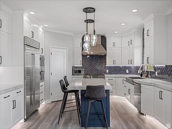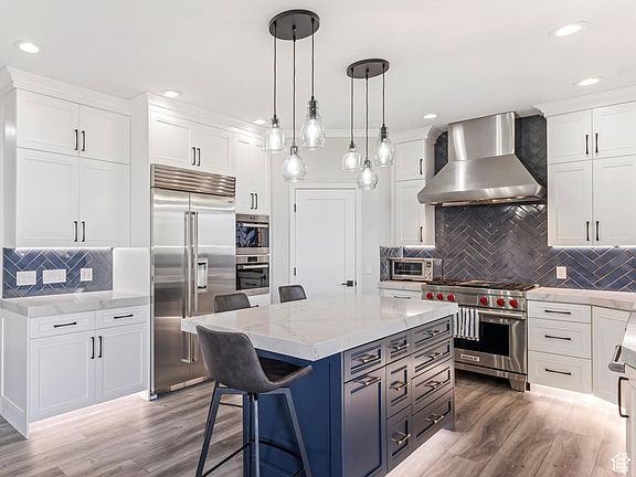 Stunning Two-Story with walk-out daylight basement and Panoramic Salt Lake Valley Views! Perched above the city, this beautifully remodeled 5-bedroom, 3.5-bath home captures sweeping views of the Salt Lake Valley from nearly every room. Step inside to find a bright, open floor plan designed for modern living and entertaining. The beautiful kitchen is the heart of the home, featuring a 42" Sub-Zero Classic side-by-side refrigerator, 36" Wolf gas range, oven griddle with pro handles, 24" Wolf microwave with pro handle, 24" Wolf steam oven with pro handles, 24" Cove dishwasher with pro handle, custom cabinetry, and sleek finishes that combine style with performance. The spacious great room and dining areas flow seamlessly, making it easy to host family and friends. Retreat to the private primary suite or spread out with four additional bedrooms, offering flexibility for family, guests, or office space. Every bathroom has been thoughtfully updated with a contemporary design. Practical upgrades set this home apart: epoxy-coated garage flooring, Tuff Shed, a powerful 26kW Generac standby generator with a whole-house switch (WiFi enabled), and meticulous attention to detail throughout. All of this comes with unmatched mountain and valley views-an extraordinary setting for your next chapter.