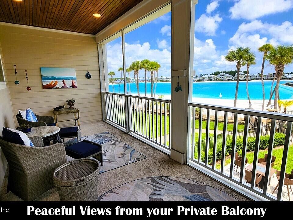 WAKE UP TO WATERFRONT SUNRISES. Enjoy morning coffee on your private balcony swing while soaking in stunning sunrise views. Spend your days lounging by the lagoon, sliding into fun at the waterslides, sipping cocktails at the swim-up bar, or practicing your swing on the putting green beside the six Har-Tru tennis/pickleball courts. Even your furry friend gets in on the fun at the Dog Splash Park.