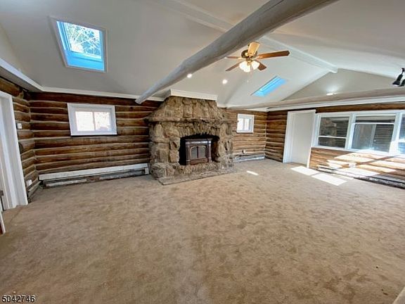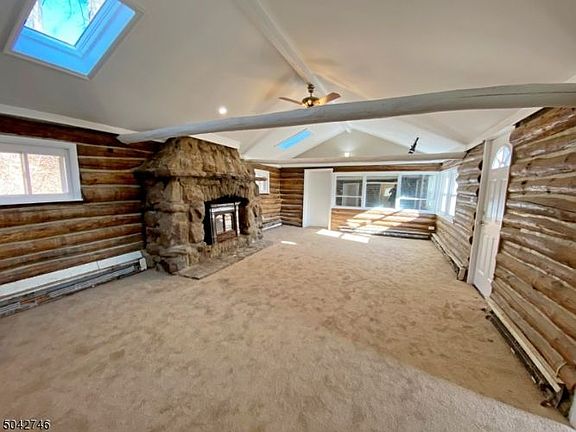 Beautifully updated log home in Jefferson, featuring a stunning field stone fireplace. Nice, level lot. Spacious LR with beamed ceilings; new boiler.