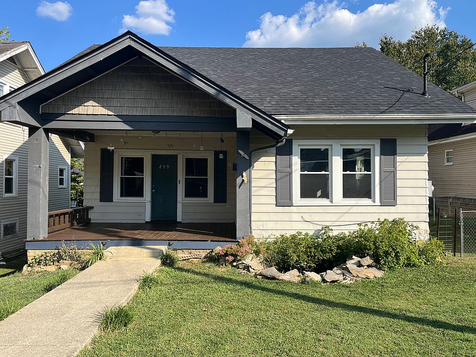 Freshly painted 3-4 bedroom house with a covered porch. There are 2 bedrooms upstairs and another downstairs. The room with french doors can also be used as a bedroom on the first floor. Brand new refrigerator. Walking distance to downtown or stay home and enjoy your own yard! Tenant is responsible for all utilities and yard maintenance. No smoking allowed.