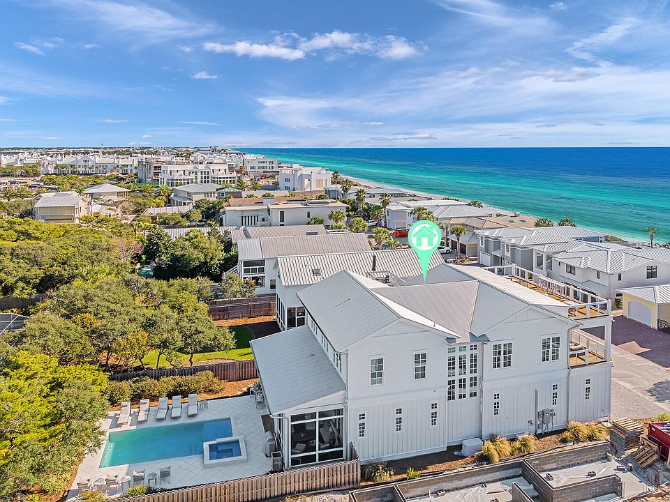 This fabulous home truly does check all the boxes. Located one tier off the Gulf in the gated. non-rental neighborhood of Sand Cliffs, the home offers breathtaking forever views of the gulf as well as convenient beach access to over 1,200 feet of pristine, quiet beach. Designed by architect Geoff Chick, the floorplan boasts spacious rooms and oversized outdoor living. No detail was spared in the professionally appointed decor with new high-end furnishings, rugs, original art and custom window treatments. This exquisite home is offered fully furnished and move in ready. Walk or bike to Alys, Rosemary, Kaiya and Camp Creek Club for all the activities and dining you enjoy but return home to a private secluded oasis and feel miles away from the action. The ultra-private backyard features a heated pool/spa, screened porch, outdoor shower and enough space for that July 4th barbeque.