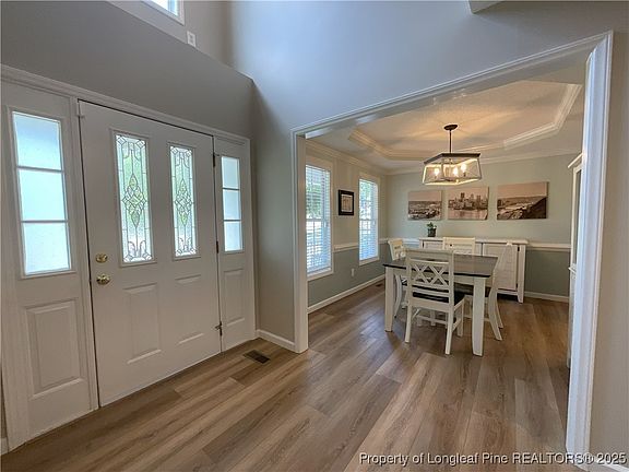 Beautifully maintained home for rent located in popular CAROLINA LAKES. This home has over 2500 square feet and sits on a large landscaped lot that backs up to the Fitness Trails. The home is on a quiet cul-de-sac street and has a large driveway, side entry garage, large front porch, rear fenced yard, rear deck and soon room. Lawn has irrigation system with 5 zones. On the main floor you will find: A front Den, Formal Dining Room, Living room, Eat in kitchen, Laundry with washer dryer and sunroom. The downstairs has all new plank flooring and the upstairs carpet has also been recently replaced. The Kitchen has been completely update with New cabinets, new countertops and a tile backsplash. Upstairs you will find the Owner suite with Carpet, Trey Ceilings, Ceiling fan. The ensuite bathroom has tile floors, a jetted tub, double sinks, linen closet, walk in closet and shower. The other 2 bedrooms and finished bonus room also have ceiling fans and new carpet. Contact our office to schedule a viewing of this must see home today. PM: Sharon. Prefers no pets. NO CATS Carolina Lakes is a Guarded/Gated POA community with lake access, beach and marina, community pool, tennis, basketball and pickle ball courts. Sand volley ball court, Frisby golf, Walking Trails, Playgrounds events and more. Deed restrictions apply.