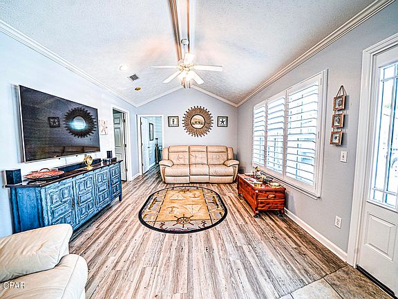 Check out this stunning 3 bedroom, 2 bath site-built home on a permanent foundation that includes an extra lot. The extra lot gives you that amazing outdoor space making entertaining fabulous and the possibilities endless. The floor plan of this home is super open and flows very well. The large kitchen has a great breakfast bar and is open to the living room. Seller has spared no expense by adding new siding, hurricane rated windows, amazing new pavers, plantation shutters and much more. Keep your boat or RV at your own beach house... don't miss out on this exceptional opportunity to have everything at your fingertips... your boat, your RV or build your outdoor kitchen with pavilion that you have been dreaming of... It doesn't get better than this! Venture Out is a golf cart community that has 300' on the beautiful pristine beaches of the Gulf of Mexico and 1,000' on the Grand Lagoon. Venture Out has something for everyone. With two pools, fishing pier, boat ramp, mini golf, children's playground and much more!
