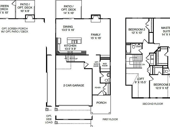 Brinley floor plan with open kitchen, family rm & dining rm on the main floor. First floor also includes fireplace in family rm, 1/2 bath & mudroom. 2nd floor has large loft space, master suite, 2 additional bedrooms & hall bath.