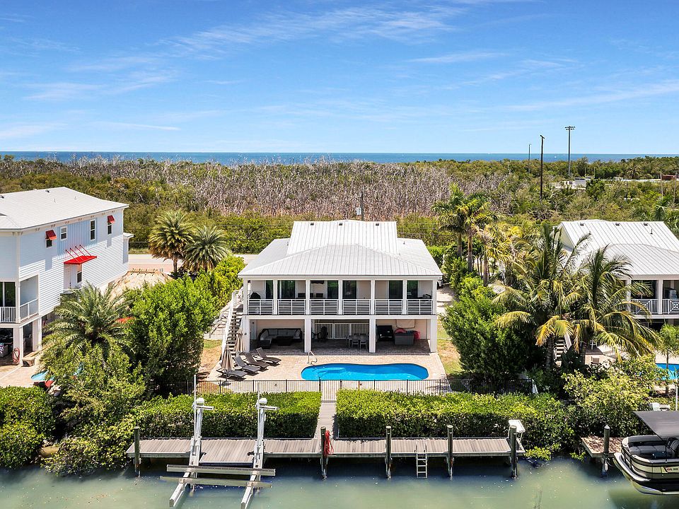 Luxurious 4 bedroom, 3 bath single family home on the highly desired Sombrero Beach Rd. This home is meticulously maintainedand! Highlighted features of this professionally decorated home are granite counter tops and back splash, stainless steel Bosch appliances, vinyl plank flooring, an open floor plan, walk in pantry, a large balcony providing water views, outside furniture, propane bbq and smart tvs throughout the home, on the balcony and one down stairs for your entertainment. Allow your gatherings to overflow onto the expansive porch offering al fresco dining for 6, a propane bbq and a smart TV for your entertainment. Outside amenities include a 60ft dock, a 17,000 lb boat lift, a private fiberglass in ground pool, a completely fenced in pool and patio area, outside patio furniture and pool loungers, plenty of parking space including a carport, a two car garage and outside uncovered parking as well. Smart features such as a security system, outside cameras, ring Doorbell and an Ecobee thermostat.Centrally located, Sombrero Beach is just 1.3 miles from the property! You are a quick walk to the Marathon middle and high school. Grocery stores, Shopping and restaurants are within 1 mile distance.