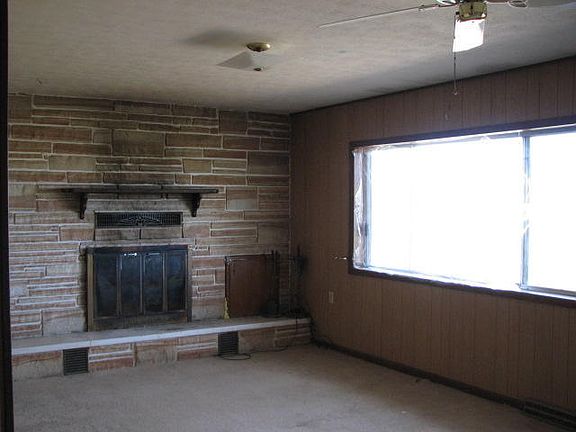 Quiet country living! This large home sits on 5 acres with nice, mature shade trees, pretty flowers and a garden spot! Home could use some work but will sure be sweet when you are done! Central heat & air, fireplace & lots of room to roam here! There is a partial basement that is great for storage and those occasional storms. Yes, the outside is block; but it is a very special type that has a high insulation factor and I have info on that in the office! Large storage shed has electricity. Perimeter fenced, corral, good pasture & nice pond and blacktop location! Very few neighbors so that 5 acres will seem like a lot more and give you grass for a horse & cow or 2!