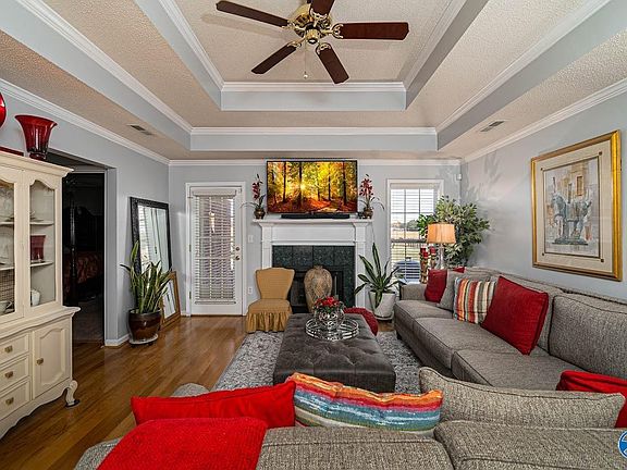 - Features: Ceiling Fan(s), Fireplace, Tray Ceiling(s), Wood Floor