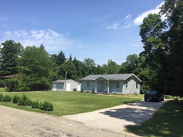 Very delightful ready to move into 2 bedroom 1 bath home situated on 1.9 Acres that borders Brush Creek. Nice area of homes. Level lot. Back deck with a Retractable awning. Nice outbuilding. Nice landscaping.Very peaceful setting.