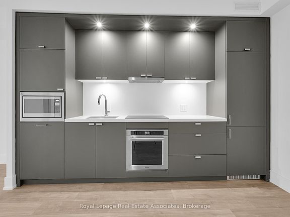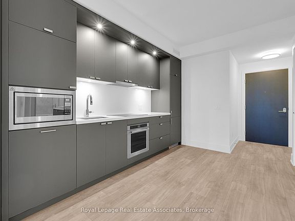 Welcome to Edenbridge by Tridel, where modern elegance meets everyday comfort in the heart of The Kingsway. This bright and spacious 1 bedroom + den suite spans 671 sq. ft. and features a smart, open-concept layout with wide-plank flooring throughout and floor-to-ceiling windows that fill the home with natural light. The modern kitchen stands out with matte charcoal cabinetry, quartz countertops, integrated stainless-steel appliances, and under-cabinet lighting - seamlessly flowing into the living and dining area with a walk-out to a private balcony overlooking the community's contemporary architecture. The bedroom offers ample natural light and generous closet space, while the den provides versatility for a home office or quiet retreat. A spa-inspired 4-piece bath features large-format porcelain tile, a backlit mirror, and premium fixtures. In-suite laundry and one parking space add everyday convenience. Residents enjoy access to an exceptional lineup of amenities including a fitness centre, indoor pool, sauna, rooftop terrace, party room, and 24-hour concierge. Perfectly located steps from Humbertown Shopping Centre, parks, top schools, and transit, this suite combines upscale living and urban convenience in one of Etobicoke's most desirable neighbourhoods.