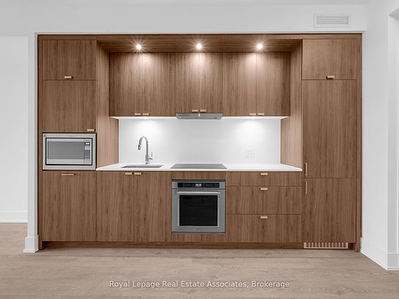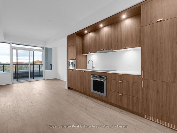 Welcome to Edenbridge by Tridel, where modern elegance meets exceptional functionality in one of Etobicoke's most desirable neighbourhoods. This beautifully designed 1.5-bedroom, 1.5-bathroom suite offers 693 sq. ft. of bright and well-planned living space, enhanced by floor-to-ceiling windows, warm contemporary finishes, and an airy open-concept layout perfect for everyday living. The stylish kitchen features integrated appliances, sleek wood cabinetry, a full-height backsplash, under-cabinet lighting, and a seamless flow into the dining and living area with a walk-out to the expansive balcony. The primary bedroom enjoys large windows, ample natural light, and direct access to a private ensuite bathroom finished with porcelain tile, a modern vanity, and a frameless glass shower. The additional half bedroom offers flexibility for a home office, nursery, or guest space, while the second bathroom provides added convenience. A full-size stacked washer and dryer complete this beautifully appointed home. Residents of Edenbridge enjoy access to first-class amenities including a state-of-the-art fitness centre, yoga studio, indoor pool, party and entertainment lounges, rooftop terrace, and 24-hour concierge. Ideally located steps from Humbertown Shopping Centre, transit, parks, and top schools, this suite offers an exceptional lifestyle in the heart of The Kingsway.